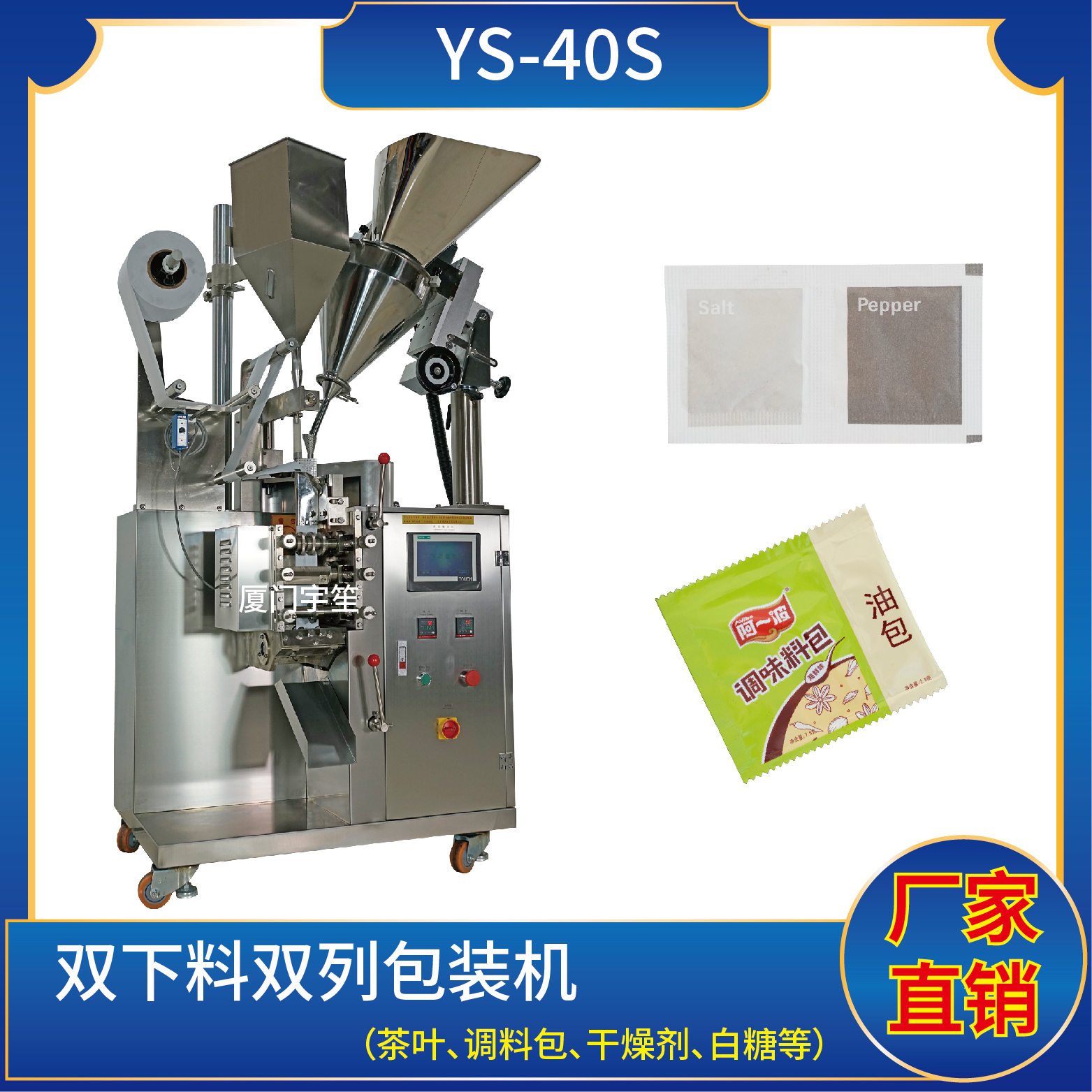 適用于方便面行業(yè)湯包,干燥劑,沖劑,碎茶等小顆粒狀物品包裝。